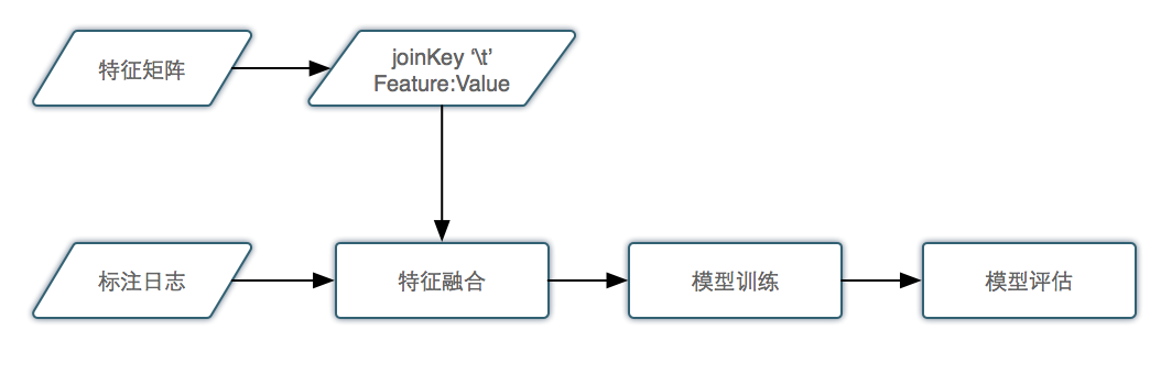 其中,从特征矩阵取出待调研的新特征,格式化为 joinKey '\t' FeatureName:FeatureValue, 例如 12345 '\t' CTR:0.123,joinkey为poiid, 新特征为CTR,特征值为0.123。格式化后的新特征文件和标注好的rerank日志作为输入,经过Map/Reduce处理生成新的标注日志,用于模型训练。