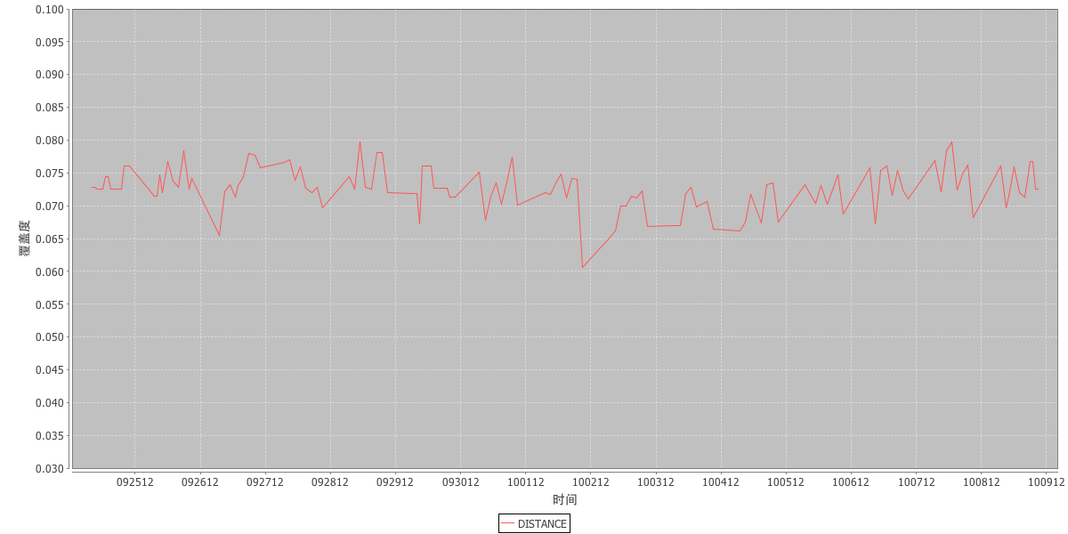 下图是用户到POI距离的覆盖度监控。从图中可以直观的看出,该特征的覆盖度约为75%,也即只有75%的用户能得到距离特征,另外25%可能没有开手机定位服务或者得不到POI的坐标。75%的覆盖度是一个比较稳定的指标,如果覆盖度变的很高或者很低都说明我们的系统出现了问题,而我们的监控系统能及时发现这种问题。