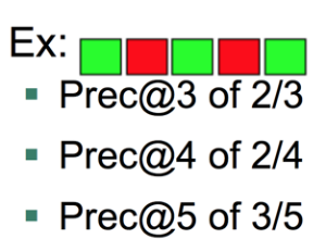 Prec@K 的定义: 设定阈值K,计算排序结果topK的相关度。