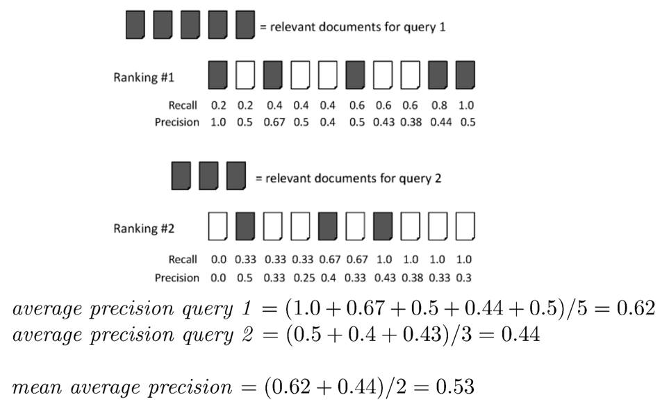 对于多个query的搜索结果,MAP为这些搜索结果AP的均值。