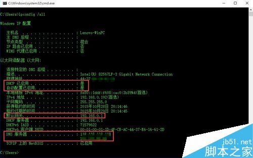 在确保网卡驱动正确安装的情况下,如果还是上不了网,则可以确定是电脑IP及DNS设置不当所造成的。对此可以在其它局域网电脑中查看相关设置。在其它可正常上网的计算机中,打开MSDOS界面,输入命令“ipconfig"并按回车,即可获得IP设置相关信息。