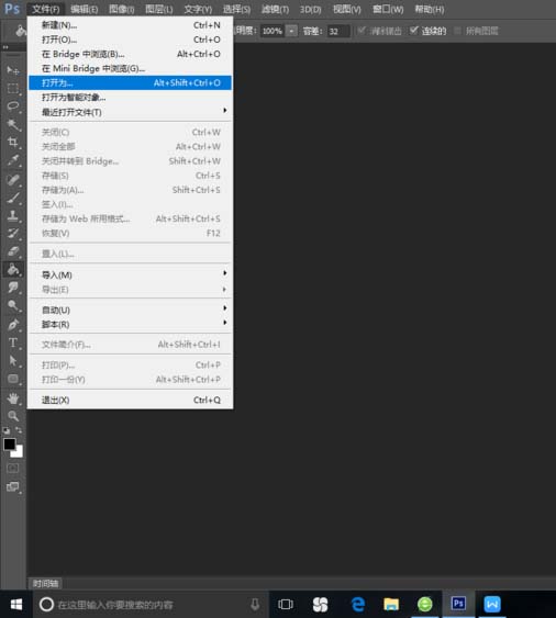 1、打开安装好的PS,选择【文件】-【打开为】,在弹出的窗口中选中自己要修改的图片,并且选中打开的方式,如果所示,在下拉列表中选择【Camera Raw】