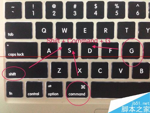 2、在打开的Finder上,按组合键shift+command+G,就会出现一个搜索框