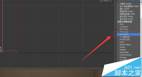 6、在修改器列表中选择“FFD4*4*4”工具,进入控制点级别对其进行修改;