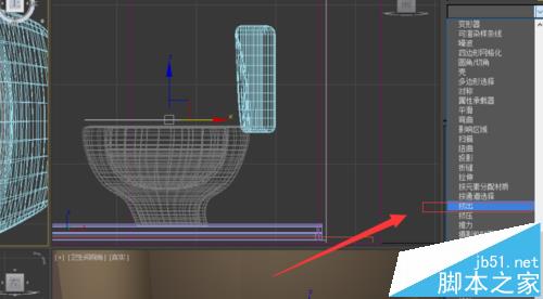 8、选中线型,在修改器列表中选择“挤出”工具,修改参数,挤出马桶盖;