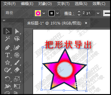 2、我们在画板中,绘制了一个五星形状。假设,要把这五星形状导出到指定的文件夹中。