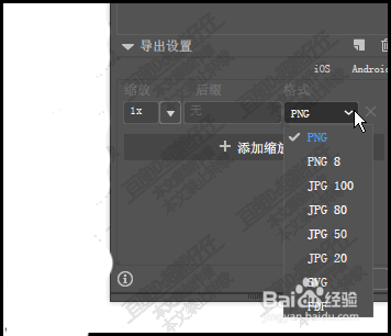 4、然后,展开导出设置,在格式这里,设置导出形状的格式,