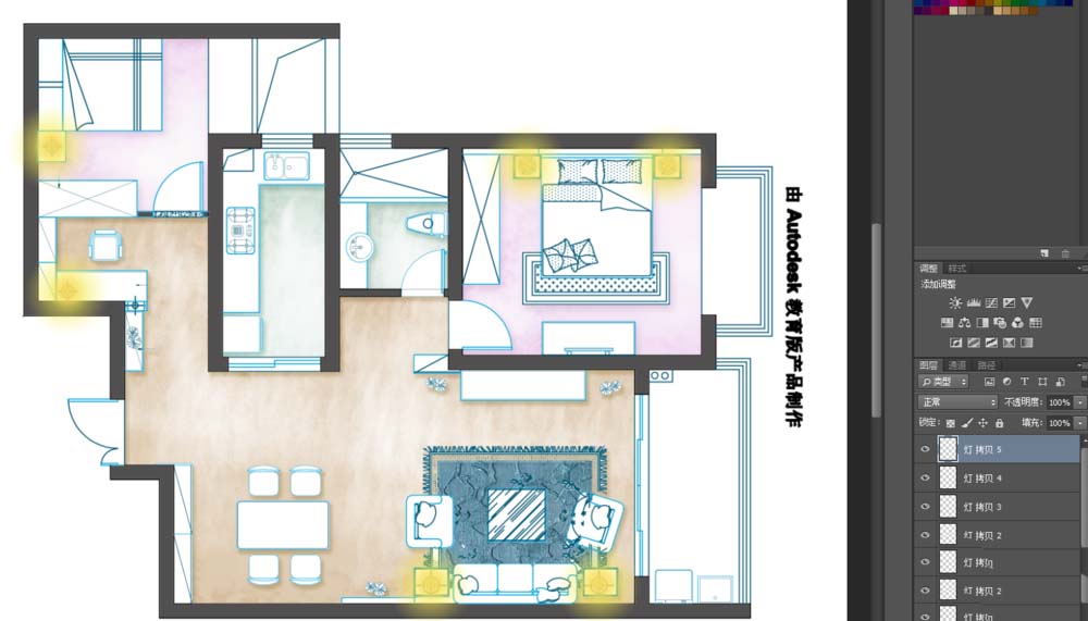以上就是专注蜜粉最近收集整理的关于PS怎么给室内平面图上色? ps彩色平面图的制作方法的全部内容,更多相关PS怎么给室内平面图上色?内容请搜索靠谱客的其他文章。