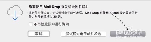 2、随后我们即可选择使用 Mail Drop 来发送超大邮件附件了,如图所示