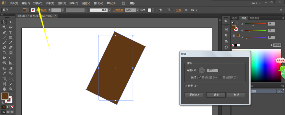 3、用圆角矩形工具绘制一个圆角矩形,对象-旋转,对其进行旋转。