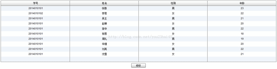 {number:"2014010101",name:"吴王",sex:"男",age:"21"},