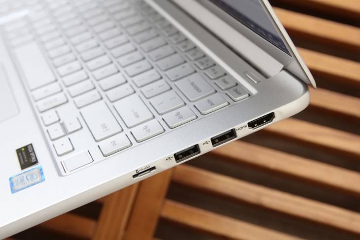 商务笔记本电脑的I/O接口不仅要求种类丰富,接口的新更能、速度也是至关重要的。三星星曜900X5N机身右侧,有一个HDMI视频输出接口、两个USB 3.0接口和一个3合1 microSD读卡器。