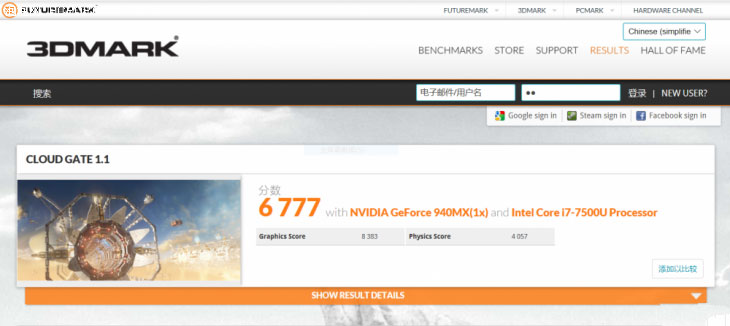 NVIDIA GeForce 940MX这款显卡算是现在移动端的入门独显,其性能相较于处理器里集成的核芯显卡有着质的飞跃。在3DMark Cloud Gate图形性能测试中,三星星曜900X5N-K03取得了6777的总分和8383的图形性能分数,这个成绩代表的性能在最高画质下以60FPS畅玩《英雄联盟》没有一点问题,运行Photoshop这种对图形性能有较高要求的软件也更加得心应手一些。