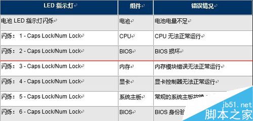 2、每个错误代码会重复显示3组,每组之间有间隔。以内存错误为例,开机后您会看到Caps Lock和Num Lock同时闪烁三下,停顿2秒后,再闪烁三下,再停顿2秒,再闪烁三下。