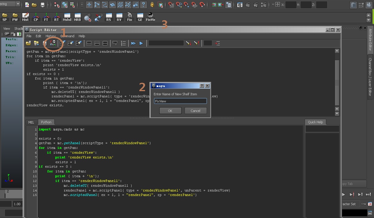 这段代码还可以添加到Maya的工具架上,具体步骤如下: