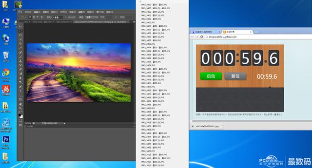 最后来看一下终极应用性能测试,100张5MB左右的照片,在PS里面打开需要多久。考虑到各个硬件的影响,主要也跟显卡有影响,这里说一下测试平台配置: