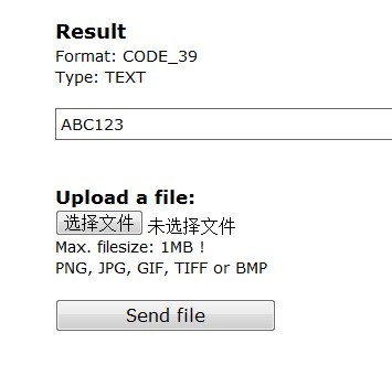 <!DOCTYPE html> <html> <head> <title>Test with embedded image</title> </head> <body> <img src="buildcode.php?codebar=BCGcode39&text=abc123"/> </body> </html>