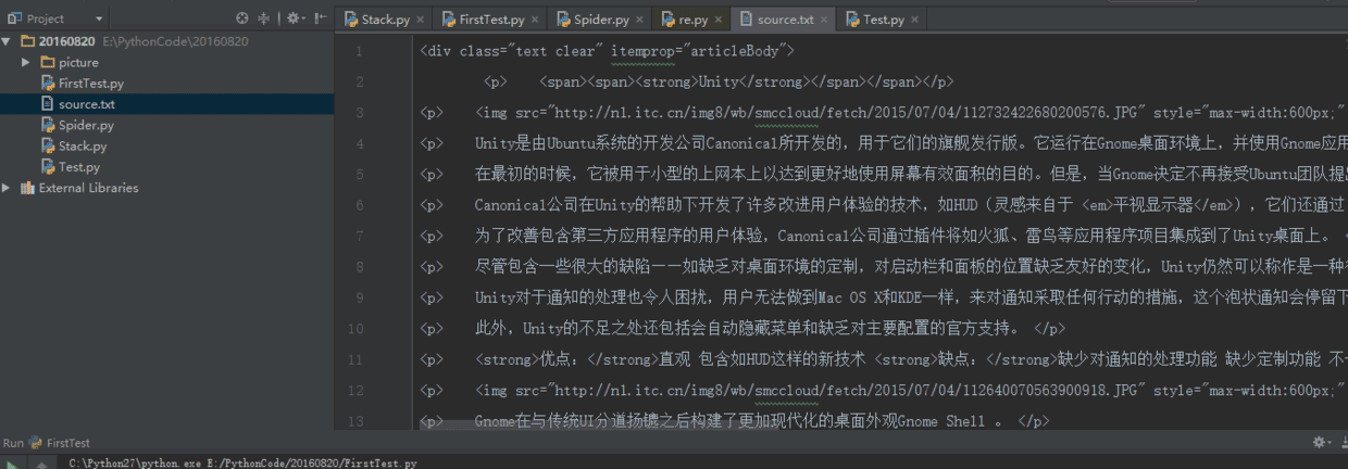 这篇文章中只是网络爬虫的第一步,所以讲解的也比较浅,所以现在我们先来利用正则表达式实现一个手动的网络爬虫,什么是手动的呢?就是我们自己把网页源代码复制下来,保存在一个 txt 文件中,然后利用正则表达式去过滤信息,然后去下载。