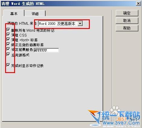 10、选择word 2000及更高版本。勾选所有的代码。这里的选项不是把这些代码都删除,而是要对这些代码进行整理,最后清理的效果是和原先文件的效果是一样的。所以,你可以放心的勾选所有的选项。