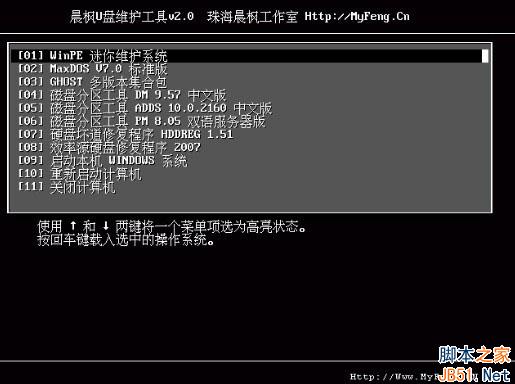 1, 下载免费的“晨枫U盘维护工具V2.0”。该工具分为“512M版”和“128M版”两个版本,“512M版”的WinPE集成了更多工具,适用用512MB以上的U盘,现在大容量的U盘都很便易,建议大家下载该版本。