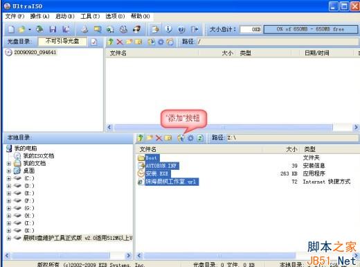 4, 如图2所示,在“本地目录”中选择Z盘即解压后的所有文件,然后点击“添加”按钮。