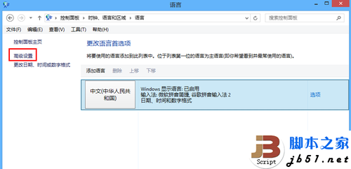 这次Win8系统已经默认安装了全新的微软拼音简捷输入法,如果你希望对其进行设置,同样是在更换输入法选项中。这次我们点击右边的“选项”,进入语言选项。