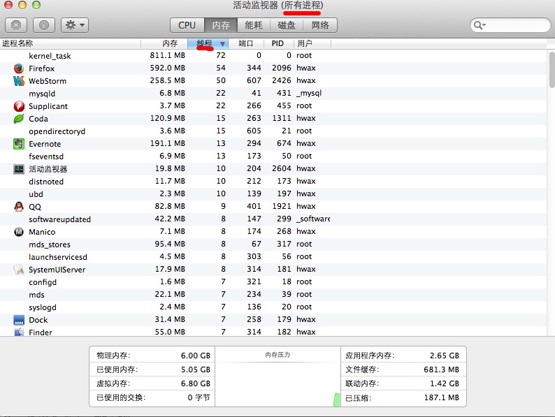 mac系统中的进程与线程