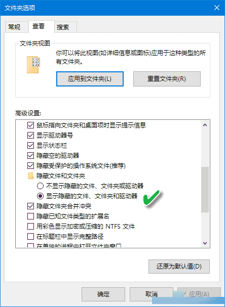 首先通过资源管理器“查看”标签的“选项”按钮,在文件夹选项中开启隐藏文件的显示功能