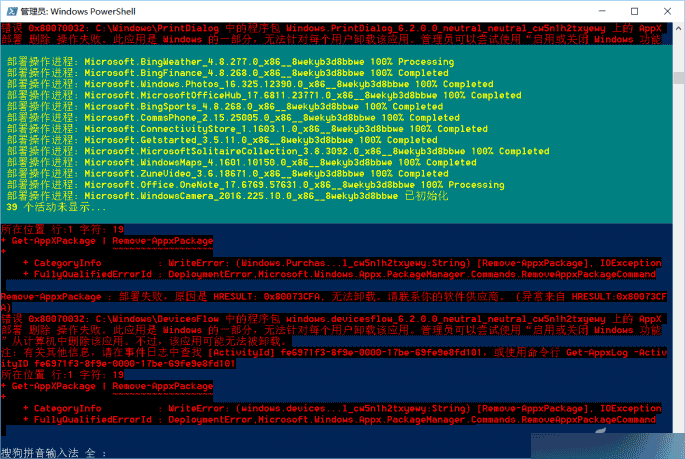 安装Windows 10时自动安装的内置应用如Xboxlive游戏,右键菜单中没有“卸载”项,上述方法无法卸载。这类应用可以借助系统自带的命令卸载。以管理员身份启动Powershell然后输入“Get-AppxPackage *需要卸载应用名称* | Remove-AppxPackage”,这样就可以将选择的应用卸载了。