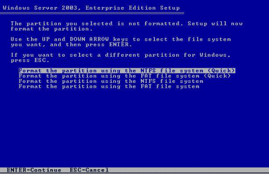 8、将光标移动到C盘位置选择回车进行安装,选择NTFS快速格式化: