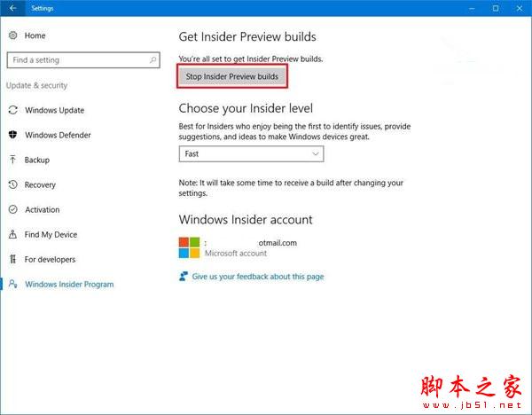3.点击停止接收Insider Preview版本