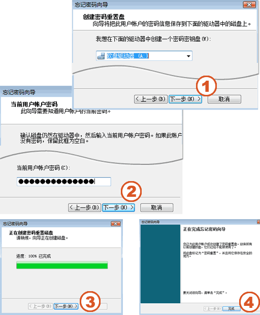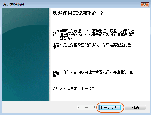 提示:1) 创建好密码重设盘后,不管你改了多少次密码,重设盘都是有效的。