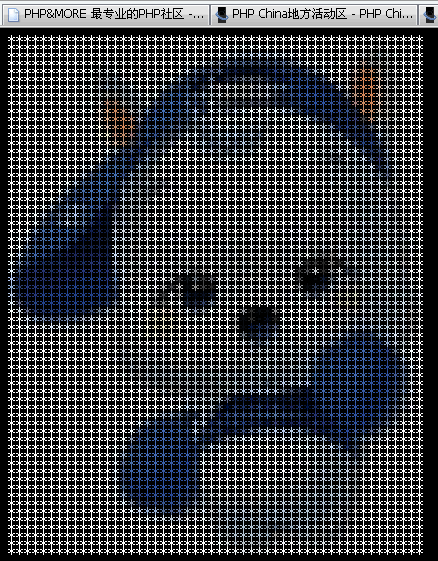 顺便贴一个效果,用ASCII表示图像。ImageColorAt()有一个很有趣的用处,它可以循环检查