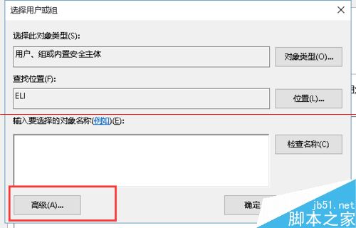 6、在弹出的选项框内,我们点击高级,然后立即查找,在如图所示的展示的用户内选择我们目前登陆的帐号,点击确定