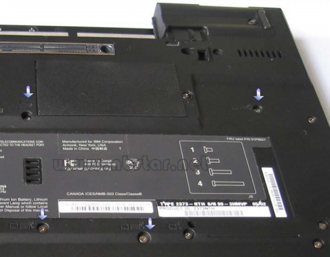 部分笔记本拆卸方法不需要如此大动干戈,按照以上的做法,往往会让本本的键盘多少有些变形;其实键盘是被触摸屏压着的,触摸屏下方底部就是平常对着我们的那一面,背面靠最前沿有一排小镙丝,正常情况下这些镙丝是隐藏在小黑胶片下面的,大约有四个左右,揭开小黑片后把镙丝取下,触摸屏下就很直观的可以看到无线网卡等内部器件!键盘也自然拿起来了