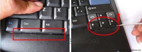 然后右手用小起子将键盘轻轻撬起来。