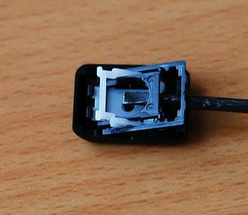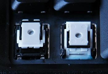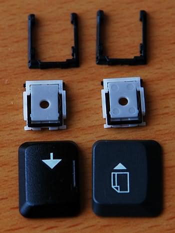 首先我们得把键帽取下来,方法很简单,稍用力向斜着自己的方向一扳就可以了,不过情况可能会出现两种结果,一个就是连按钮的支架一起扳出来,一个就是仅仅扳出了键帽。下图就是仅仅扳出键帽,而图4则是连支架一起扳出来了。这都不要紧,装回去就是了。那么怎么装回去呢?