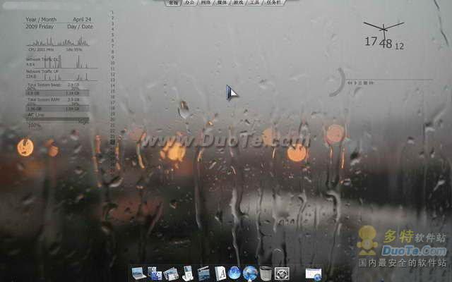 苹果OS那样的界面才能叫做美丽。有没有办法把Windows 7的界面做一番大的改变呢?这里为大家推荐一款工具:Rainmeter,使用它,就可以让Windows 7改头换面,比苹果界面还漂亮!