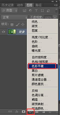2、选择图层面板中的“色彩平衡”;
