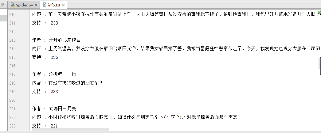 以上就是畅快西牛最近收集整理的关于Python 制作糗事百科爬虫实例的全部内容,更多相关Python内容请搜索靠谱客的其他文章。