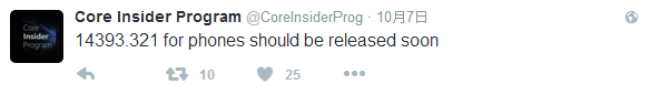 10月8日消息,知名爆料推特账号Core Insider Program最近为我们带来了Win10 Mobile一周年更新版本推送的消息,他称Win10 Mobile一周年更新14393.321即将推送。