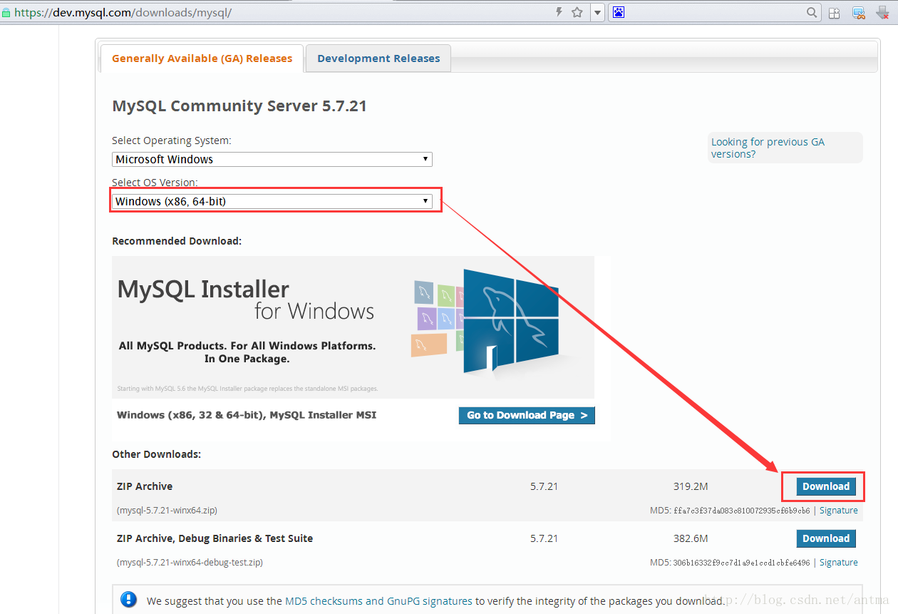 1、下载mysql,下载地址