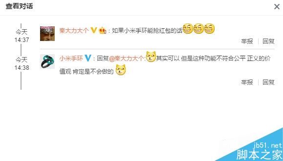 那小米手环能不能抢红包呢?答案是肯定的。不过@小米手环 官方表示,但这种功能不符合公平正义的价值观,肯定是不会做的。