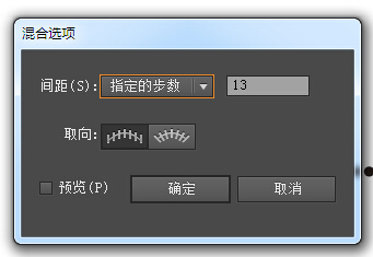 4,再次使用混合工具,将三组圆混合,同时调节混合选项。