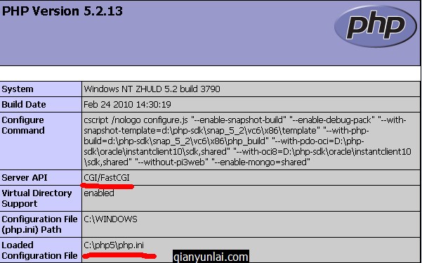 c、以FastCGI的方式运行。这种形式是CGI的加强版本,CGI是单进程,多线程的运行方式,程序执行完成之后就会销毁,所以每次都需要加载配置和环境变量fork-and-execute(创建-执行)。而FastCGI则不同,FastCGI 像是一个常驻 (long-live) 型的 CGI,它可以一直执行着,只要激活后,不会每次都要花费时间去 fork 一次。FastCGI进程管理器自身初始化,启动多个CGI解释器进程 (在任务管理器中可见多个php-cgi.exe)并等待来自Web Server的连接。下面我就分边配置这三种运行方式: