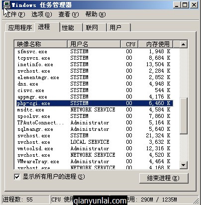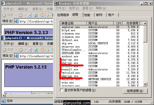 如果同时打开多个则会有很多php-cgi.exe,并且在执行完成之后消失: