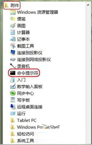 1、首先我们要在开始菜单中依次展开“所有程序”—“附件”—“命令提示符”,在命令提示符上单击右键,选择“以管理员身份运行”;