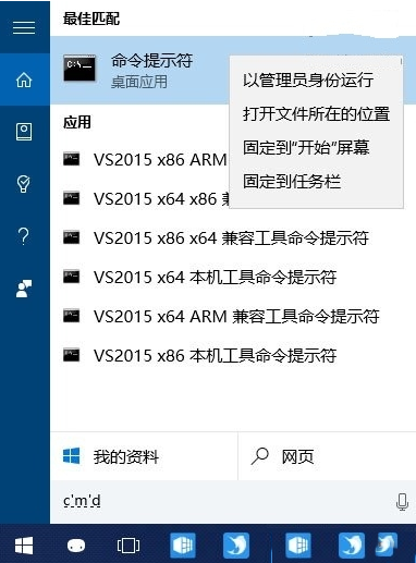1、在开始菜单或任务栏搜索框中输入CMD,在搜索结果中找到命令提示符,右键单击,选择以管理员身份运行。