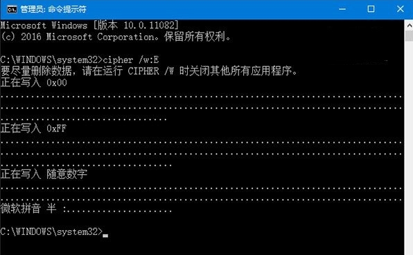 实际上这项功能在Windows XP、Win7、Win8.1、win10中都存在,系统自带了一个名为cipher的命令行工具,其用途是使用EFS加密文件系统对文件进行加密。不过这个工具还有一个附加功能,可以用来对硬盘上的剩余空间进行擦写,从而安全删除剩余空间中包含的已删除文件。该工具使用方法非常简单,以win10为例,具体操作如下: