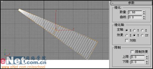 2、点击“修改器列表”下拉框中的“锥化”项,调整其参数,如图2所示。